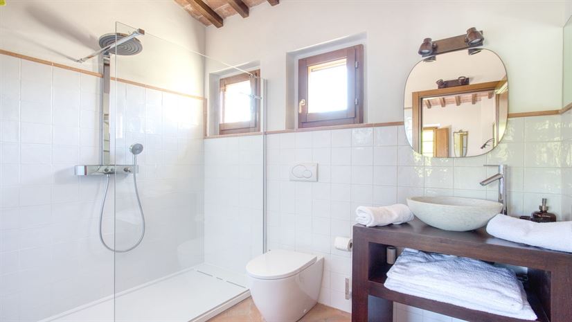 Cette partie de la propriété est entourée de différentes villas qui donnent sur la piscine. Celle-ci jouit d'une jolie vue sur les toits de Gaiole et sur les collines du Chianti à perte de vue. Une petite salle de gym équipée de douches est à la disposition des clients et des résidents.