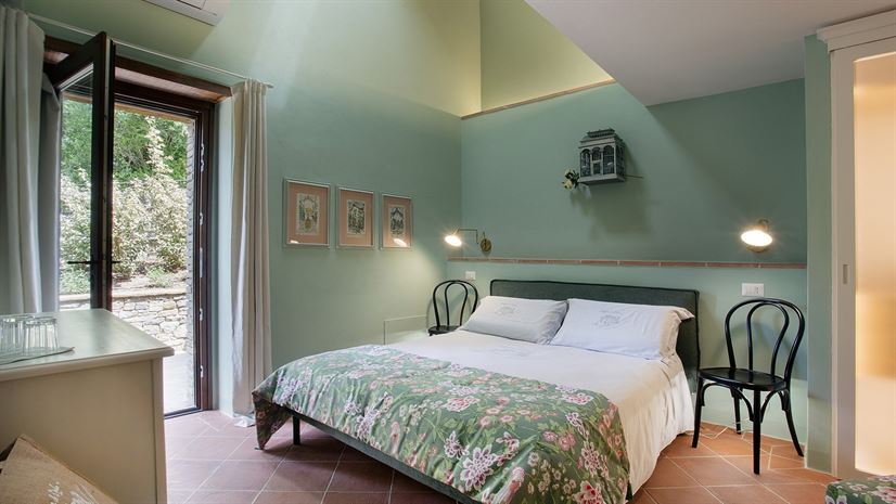 Double bed 160cm x 190cm (cannot be converted into twin beds), bedside tables, chest of drawers, wardrobe, shower, air-conditioning, mosquito screen, French door to terrace.