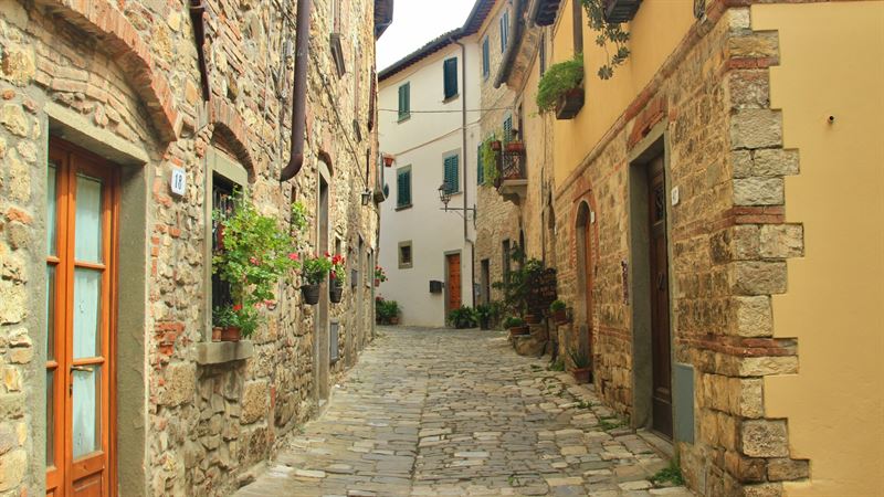 Situé entre Florence et Sienne, Montefioralle domine le village de Greve in Chianti et est considéré comme l’un des plus beaux villages de Toscane. Datant de 1085, il conserve son plan circulaire d’origine et ses remparts défensifs. Presque entièrement piéton, Montefioralle invite à une promenade paisible dans ses ruelles pavées, à la découverte de l’église San Stefano ou à la dégustation d’un verre de Chianti Classico. En dehors des murs, les chemins bordés de vignes et d’oliviers offrent des vues spectaculaires, avec en toile de fond les maisons de pierre du village.