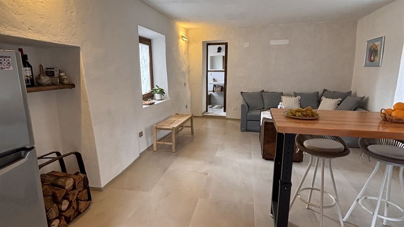 À l’intérieur, poutres apparentes, sols en terre cuite, meubles anciens et décoration soignée créent une atmosphère chaleureuse et authentique.
