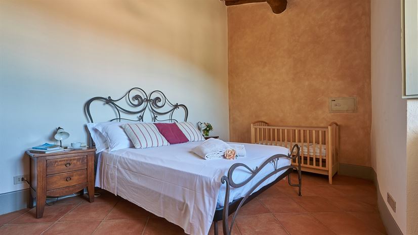 Lit double (ne peut pas être converti en lits jumeaux), tables de chevet, armoire, lit d'enfant en bois, climatisation.