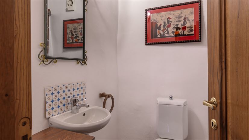 À l’intérieur, la villa dégage de la chaleur, avec des sols en terracotta, des poutres en bois et des meubles faits main créant une atmosphère accueillante. Chaque détail a été soigneusement choisi pour préserver l'authenticité d'une ferme historique tout en offrant un confort moderne.
