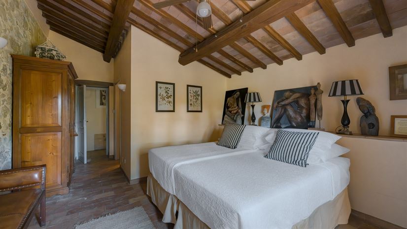 Double bed (can be converted into twin beds), bedside tables, walk-in wardrobe.