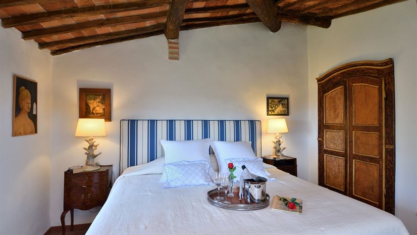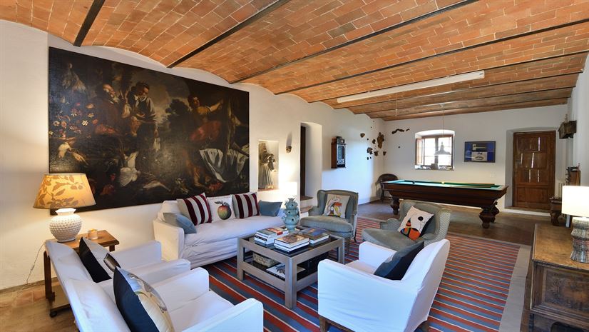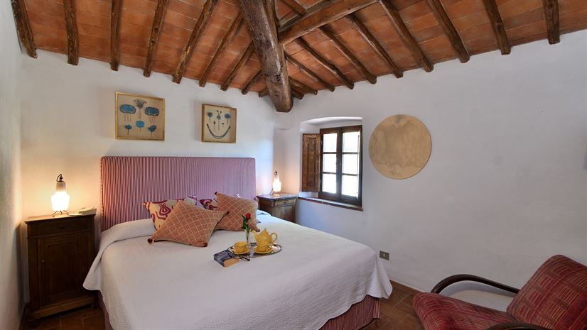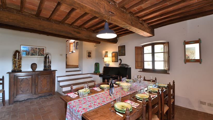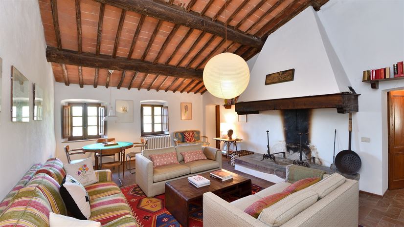 Les touches artistiques de son intérieur mettent en valeur le caractère de cette villa. Les doux tissus aux tons crème associés à des accessoires aux couleurs vives confèrent une atmosphère élégante et détendu ; tandis que les poutres apparentes en bois et les plafonds en terre cuite, conjugués à des volets en bois de châtaignier soulignent l’aspect authentique de la villa. Malgré son apparence rustique et son emplacement niché au milieu d’un vignoble du Chianti Classico, cette villa Toscane n’est qu’à 1h 20min en voiture du centre de Florence. San Gimignano et Sienne ne sont également qu’à un jet de pierre. Goutez à la vie de villa dans le village voisin de Lecchi in Chianti à 5,5 km et aux délices offerts par Radda in Chianti, au sommet de la colline, à 6 km de la villa.